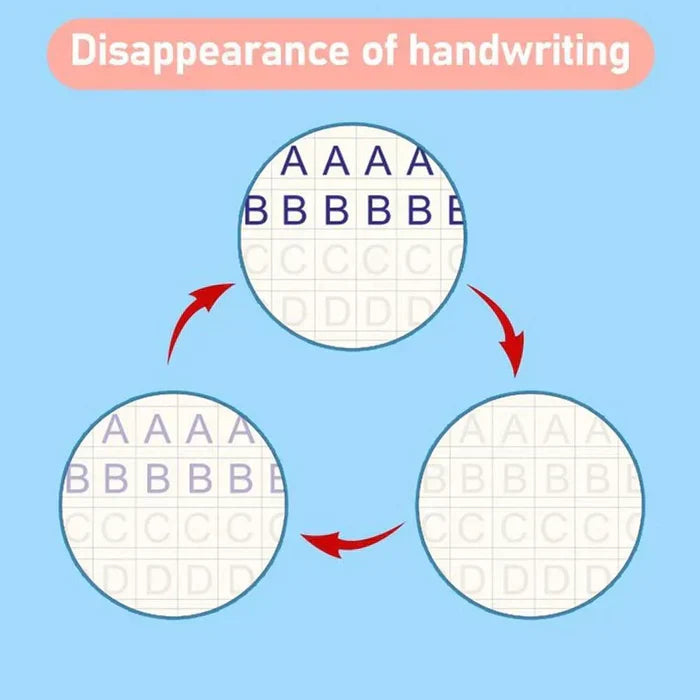 The ink will automatically disappear and the Copybook can be reused with the use of our Magic Pen.